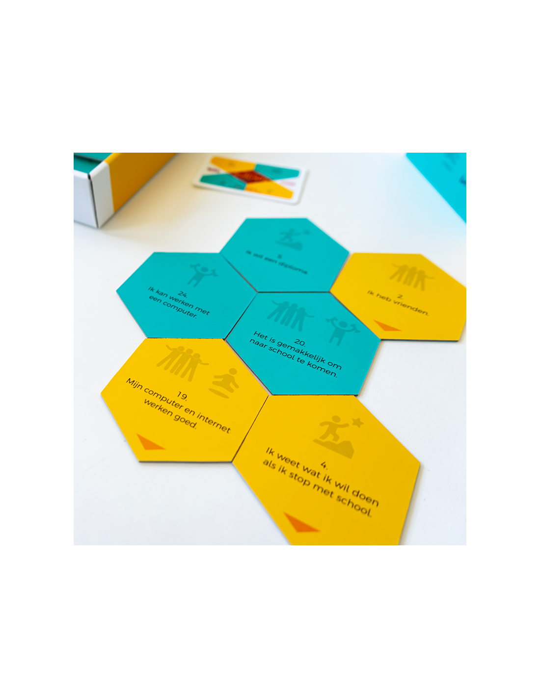 In deze versie laat je de jongere de puzzelstukken met stellingen zelf lezen en de (bij)vragen beantwoorden.